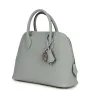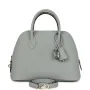 This 1923 Bolide is in Gris Pantin epsom leather with palladium hardware and has tonal stitching, a top zipper closure, clochette, lock, and two keys, double rolled handles, and a removable shoulder strap.