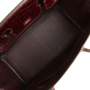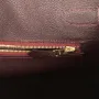 The interior is lined with Bordeaux chevre leather and has one zip pocket with an Hermès engraved zipper pull and an open pocket on the opposite side.