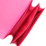 The interior is lined with Rose Mexico lambskin and has an open pocket on the front wall, a center divide, and a slit pocket on the back wall.