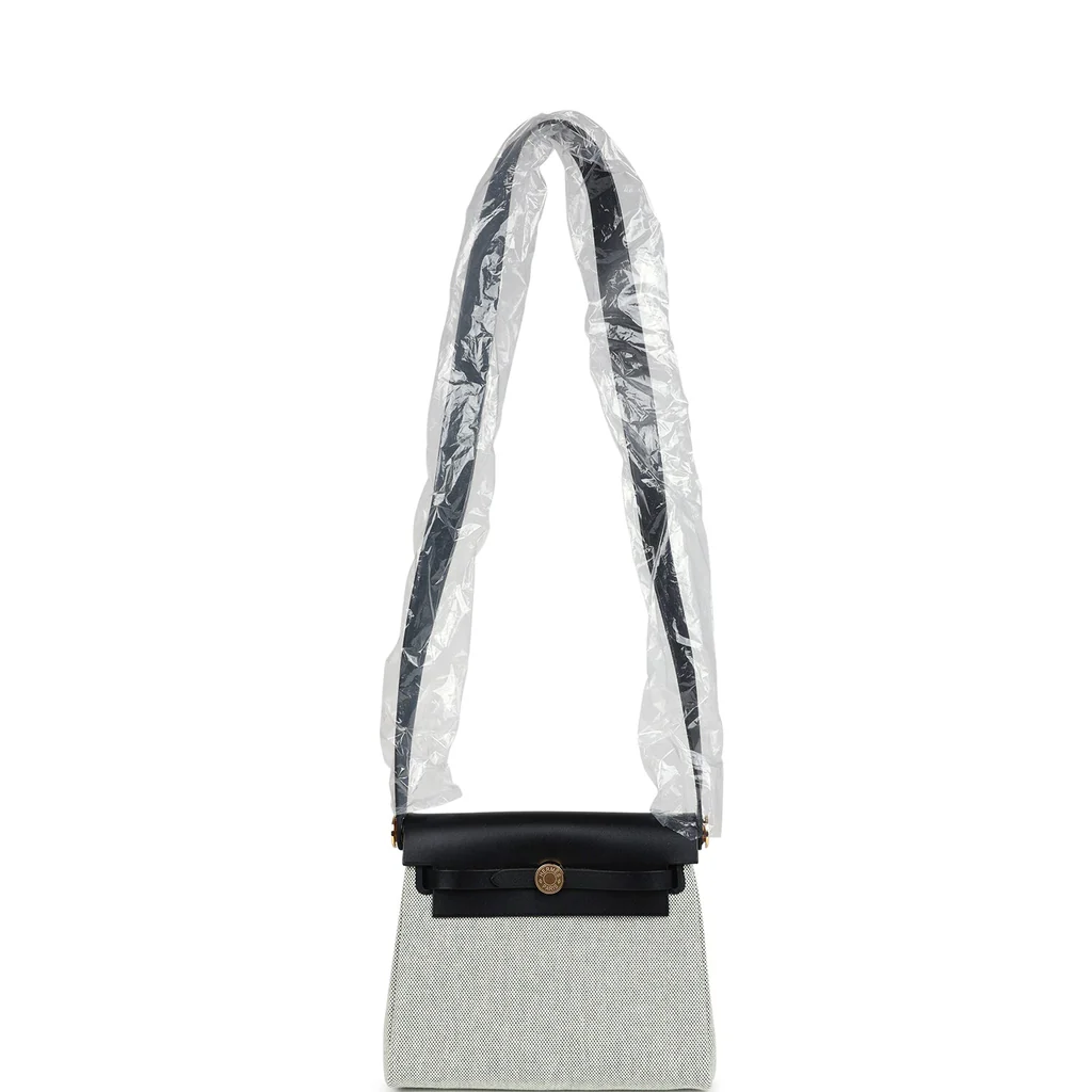 Replica Hermes Herbag Zip 20 Mini Ecru and Vert Moyen Toile H Canvas and Black Vache Hunter Gold Hardware