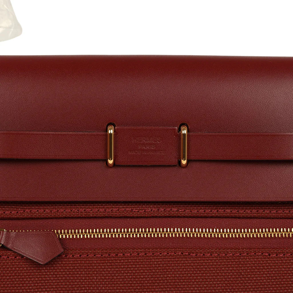 Replica Hermes Herbag Zip 20 Mini Rouge H Toile Militaire Canvas and Vache Hunter Gold Hardware