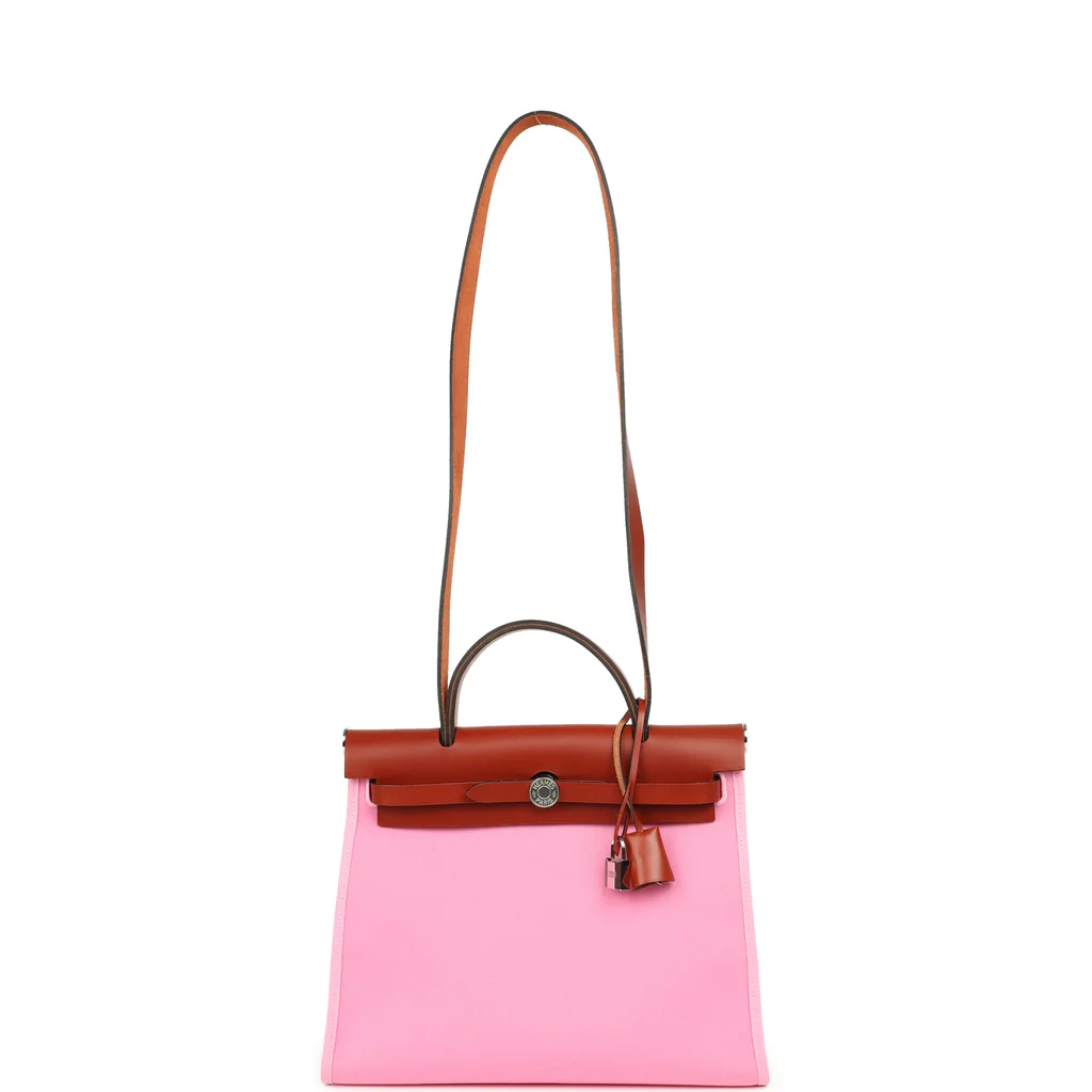 Replica Hermes Herbag Zip PM 31 Bubblegum Pink Officier Canvas and Cuivre Hunter Palladium Hardware