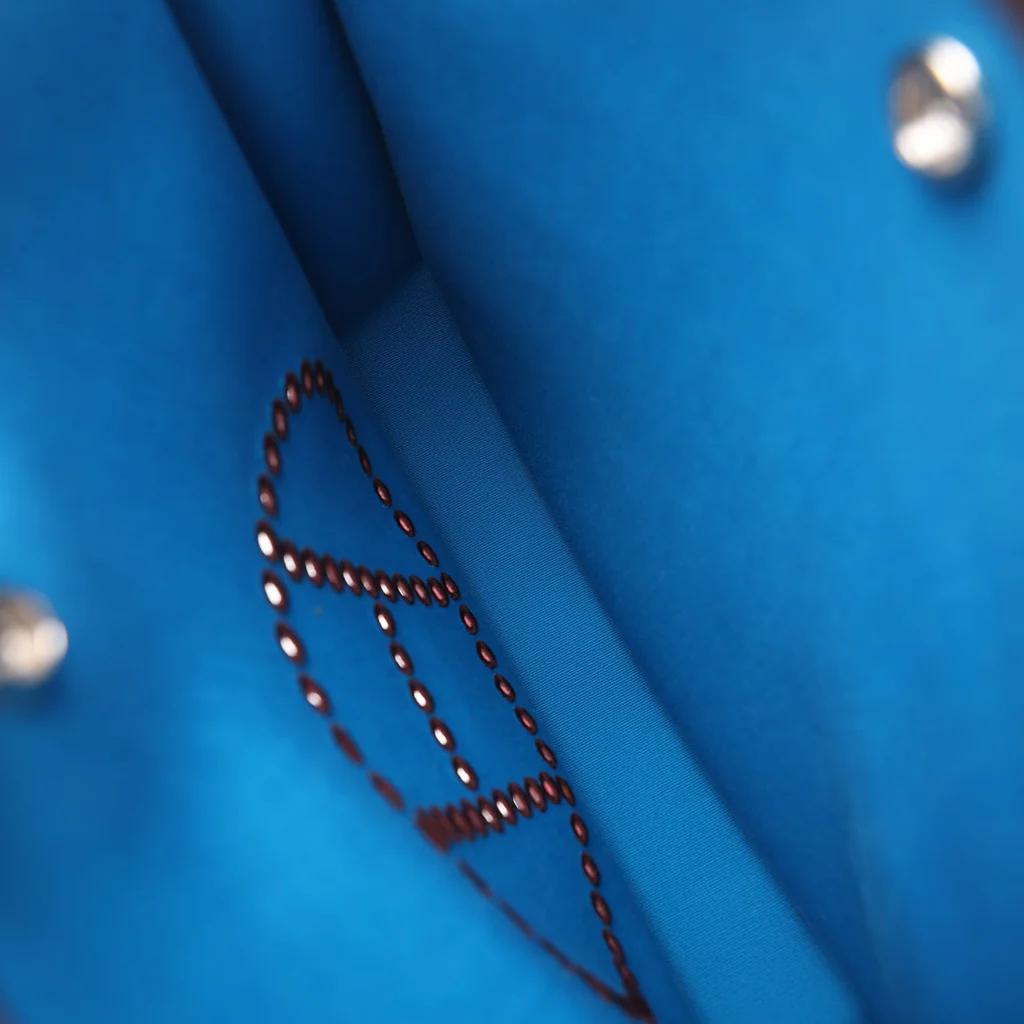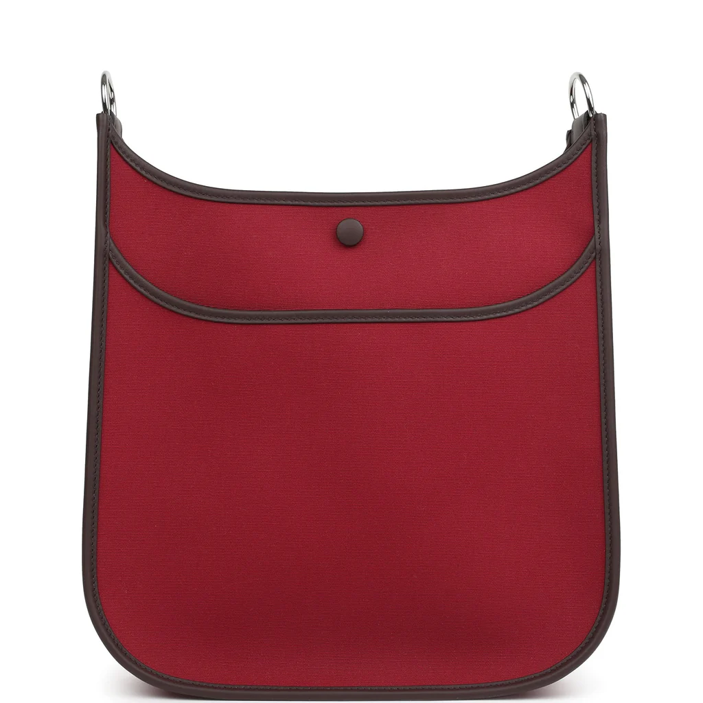 Replica Hermes Neo Evelyne PM Rubis Officier Canvas and Rouge Sellier Swift Palladium Hardware