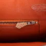 The interior is lined with Orange leather and has one zip pocket with an Hermès engraved zipper pull and an open pocket on the opposite side.